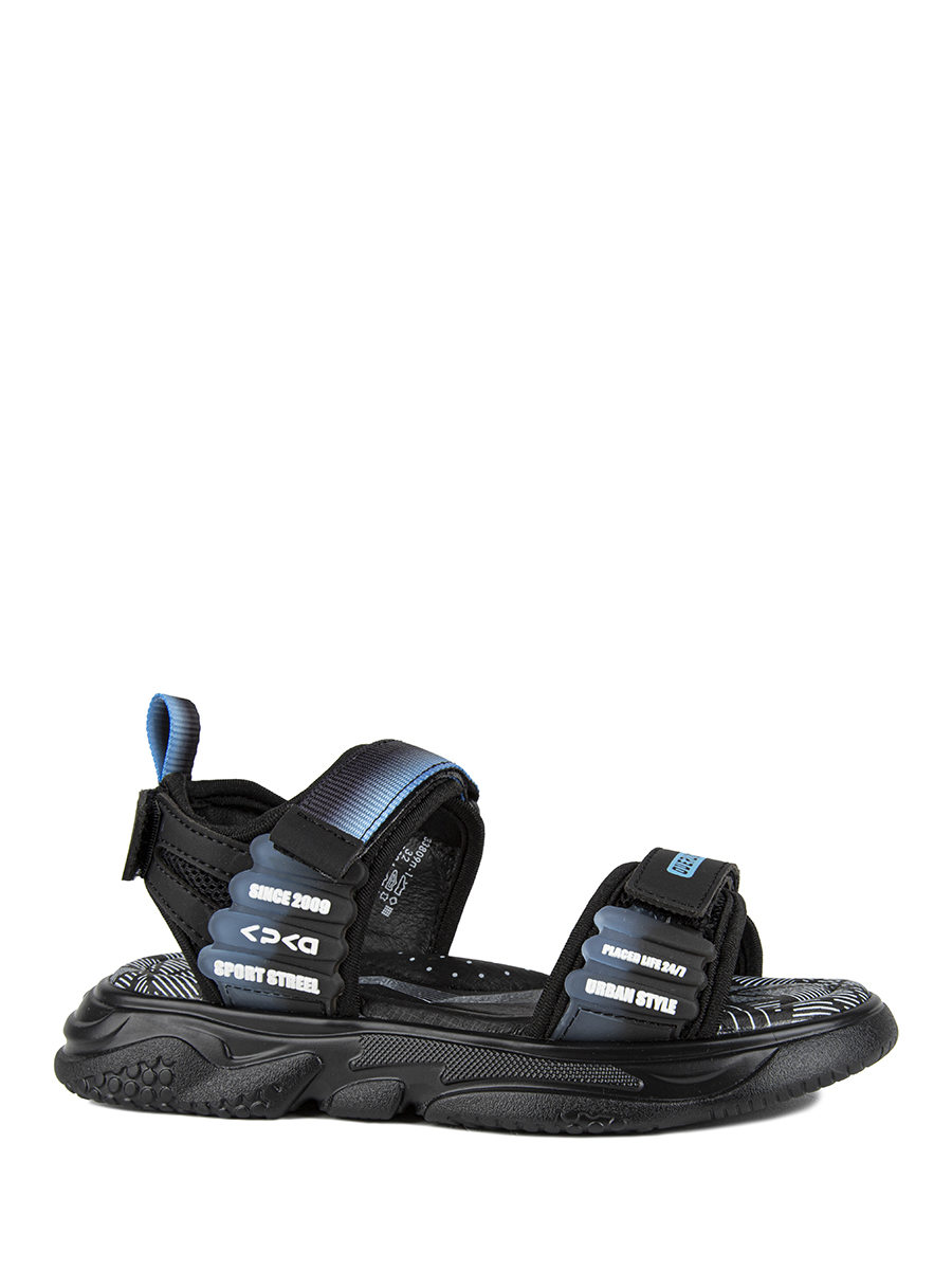 Открытые модные босоножки на спортивной подошве понравятся каждому мальчишке. Материал верха сочетает в себе искусственную кожу и текстиль. Липучки помогут отрегулировать посадку по ноге, а подкладка и стелька из натуральной кожи обеспечат комфортную носку. Легкая и гибкая подошва отлично амортизирует и создает дополнительный комфорт.
