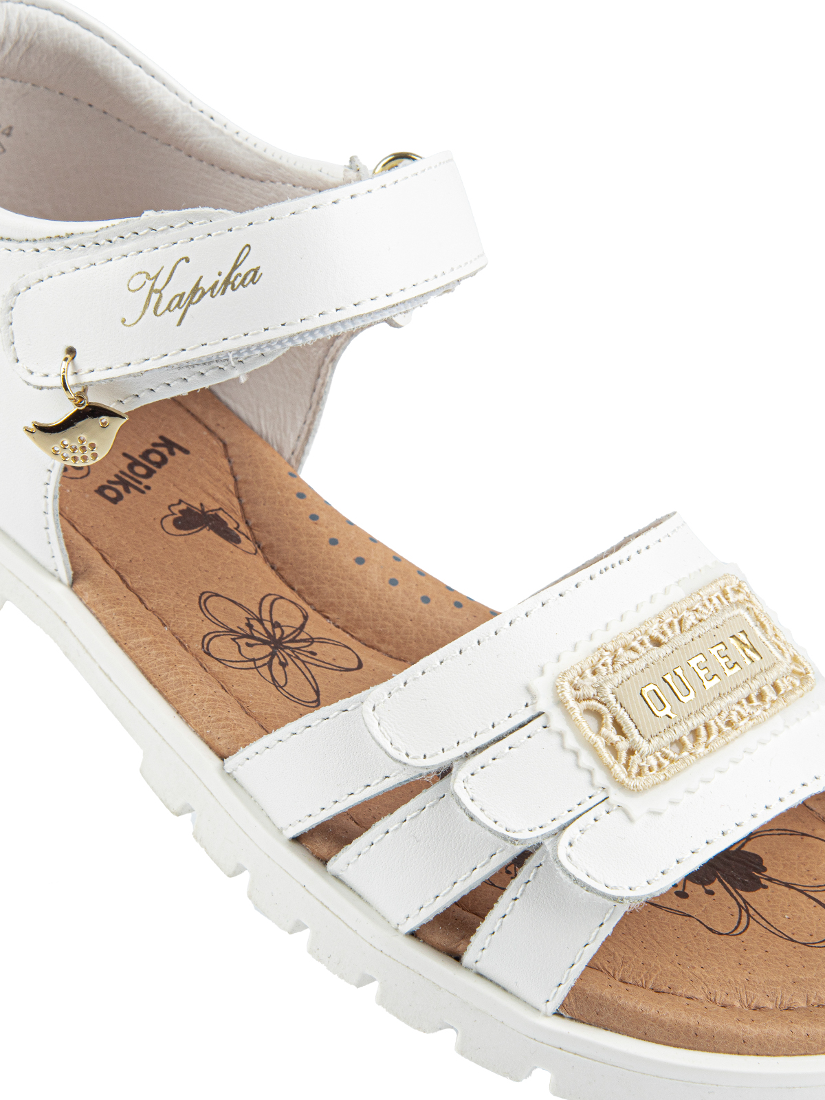Сандалии для девочки изготовлены из натуральной кожи (верх, подкладка и стелька). Сандалии имеют жесткий задник и подсводник для поддержки и формирования правильной формы стопы. Подошва произведена из термопластичной резины (TPR), что обеспечивает долговечность и хорошее сцепление с поверхностью.