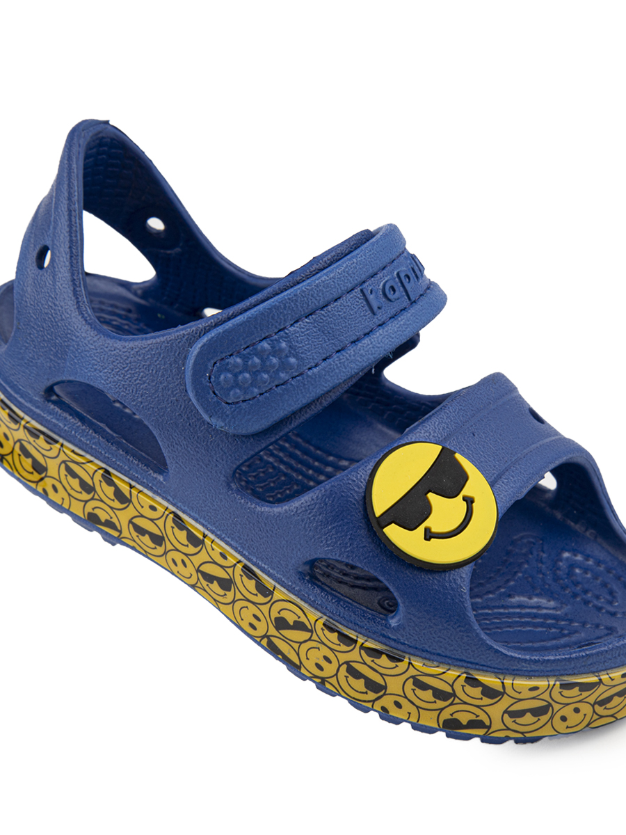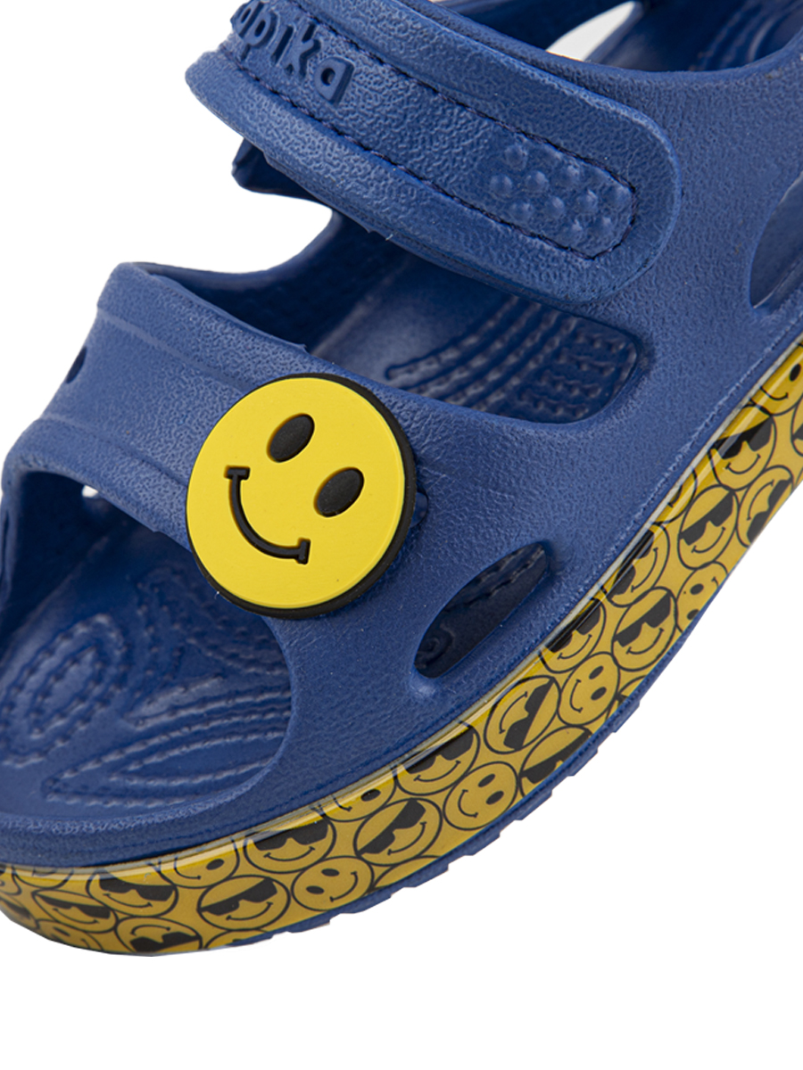 Открытые пляжные сандалии - наш хит! Классный дизайн, эффектные цветовые решения, съемная декор-пуговица, а главное достоинство - светодиоды в подошве. В модели есть липучка, которой можно отрегулировать посадку на ножке. Ребёнок будет в восторге от такой модели!