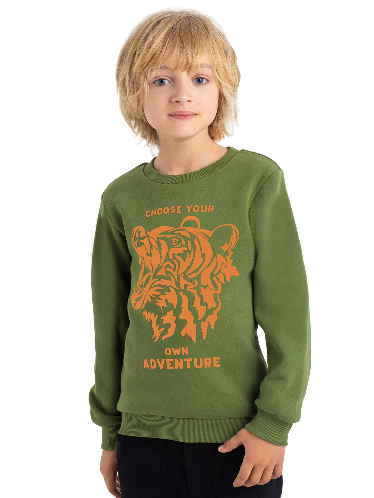 Стильный свитшот для мальчика выполнен из мягкого поликоттона в модном цвете. Горловина, манжеты и низ усилены рибом. Стильный акцент вносит контрастный принт из флока по переду изделия. Благодаря качественной ткани свитшот приятно носить и легко стирать, ткань не линяет, не скатывается и не теряет форму даже после многочисленных стирок.