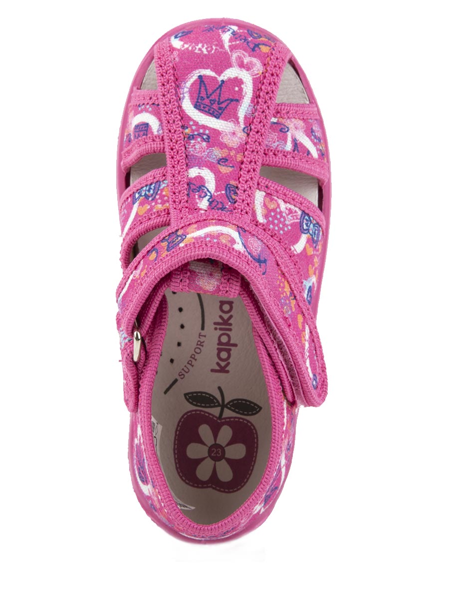 Для дома или детского сада мы подготовили для вас отличный вариант обуви. Верх и подкладка тапочек выполнены из 100% хлопка, что позволяет ножке «дышать», кожаная антибактериальная стелька поддерживает комфортный температурный режим. Жесткий задник и наличие подсводника обеспечивают правильную фиксацию стопы и профилактический эффект для всего опорно-двигательного аппарата. ТЭП подошва продлевает срок службы обуви. Яркие симпатичные расцветки не оставят равнодушными ни одного ребенка.
