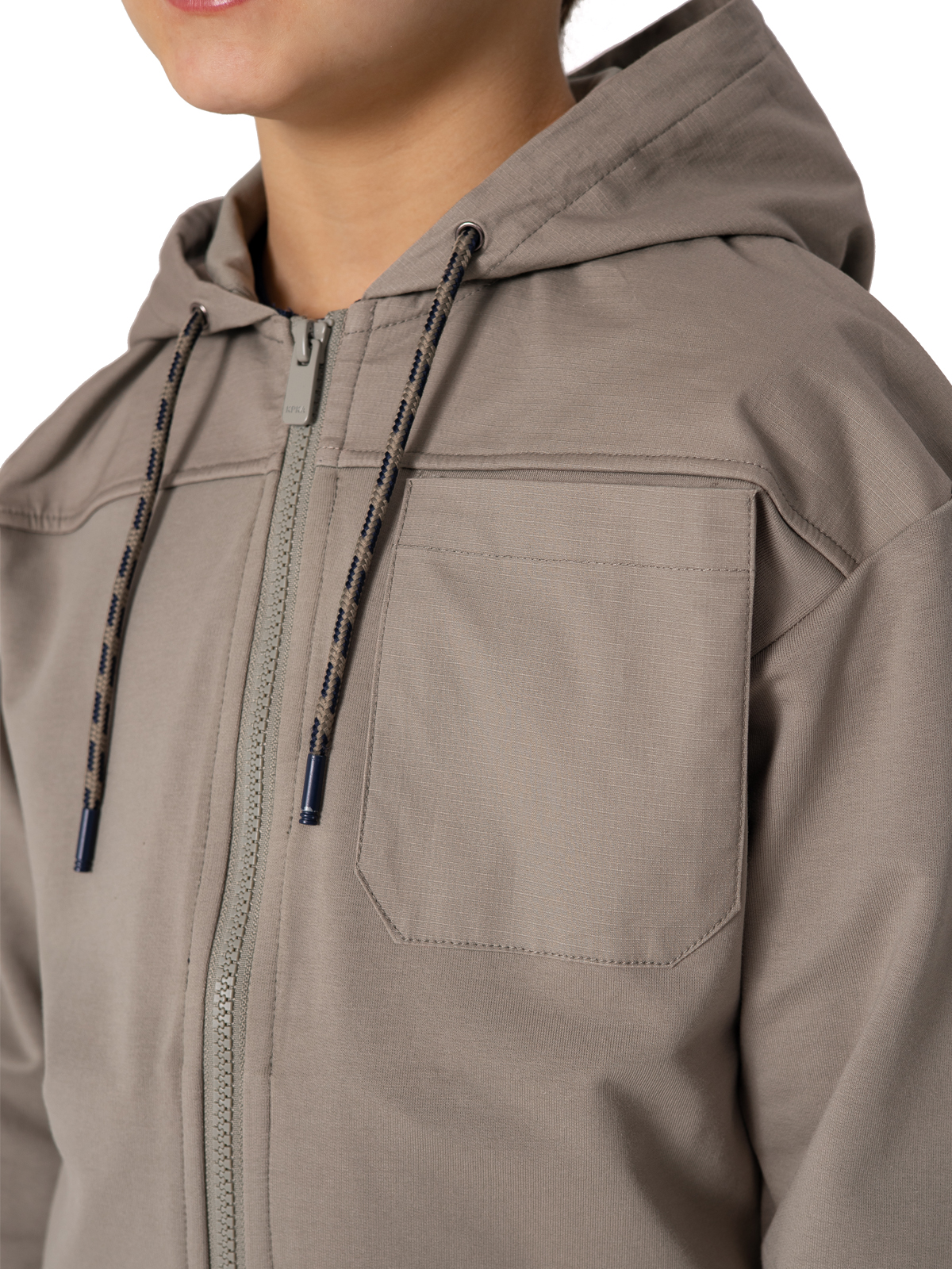 Комфортная толстовка для подростка выполнена из мягкого материала — хлопка с добавлением эластана, который обеспечивает отличную посадку и сохраняет форму после стирки. Тёмно-серый цвет с эффектом выстиранного материала придаёт изделию особый характер. Модель оснащена удобной застёжкой-молнией, вместительным карманом-кенгуру и практичным капюшоном с регулируемыми завязками. Декоративная вышивка на груди добавляет индивидуальности, а мягкие рибы по низу изделия и рукавам гарантируют комфортную посадку и защиту от ветра. Благодаря качественным материалам толстовка отлично пропускает воздух, не вызывает аллергии и остаётся приятной к телу даже после многократных стирок. Идеальный выбор для повседневной носки и активного отдыха.