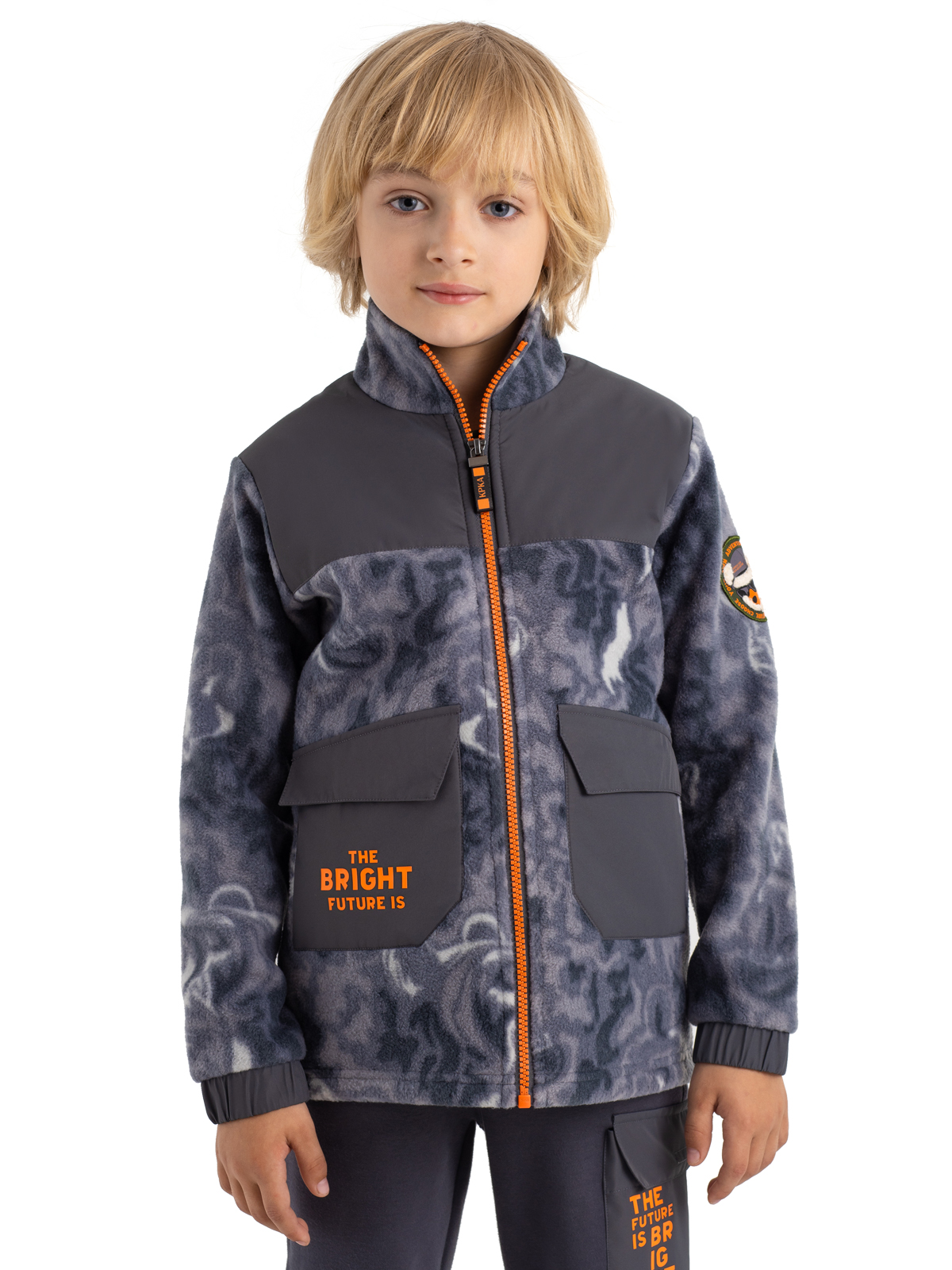 Толстовка изготовлена из мягкой принтованной микрофлисовой ткани, плотностью 400 гр/м2. Теплая и легкая, не сковывает движения, флисовая толстовка идеально подойдет, как для прогулок, активного отдыха, так и при повседневной носке. Одежда из флиса отлично сохраняет тепло, почти не впитывает влагу, обладает хорошей воздухопроницаемостью, не вызывает аллергии и весьма приятна на ощупь. Воротник стойка полностью закрывает горло, предотвращает от попадания холодного ветра. Модель дополнена контрастной ветрозащитной молнией, накладными карманами и трендовым патчем.