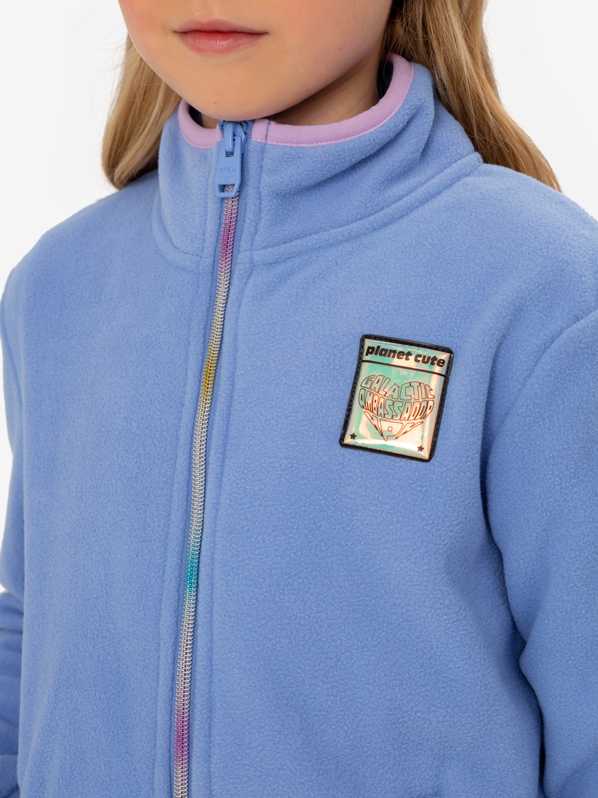 Толстовка изготовлена из мягкой микрофлисовой ткани, плотностью 230 гр/м2. Теплая и легкая, не сковывает движения, флисовая толстовка идеально подойдет, как для прогулок, активного отдыха, так и при повседневной носке. Одежда из флиса отлично сохраняет тепло, почти не впитывает влагу, обладает хорошей воздухопроницаемостью, не вызывает аллергии и весьма приятна на ощупь. Воротник стойка полностью закрывает горло, предотвращает от попадания холодного ветра. Модель дополнена контрастной отстрочкой по рукавам, низу и горловине, переливающимися молниями и трендовым патчем.