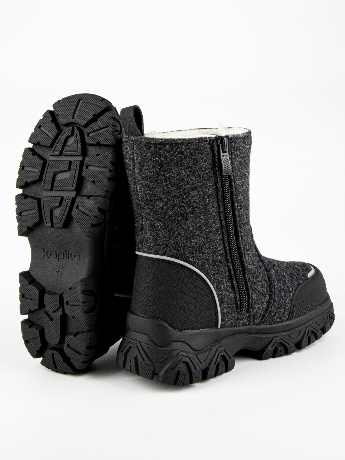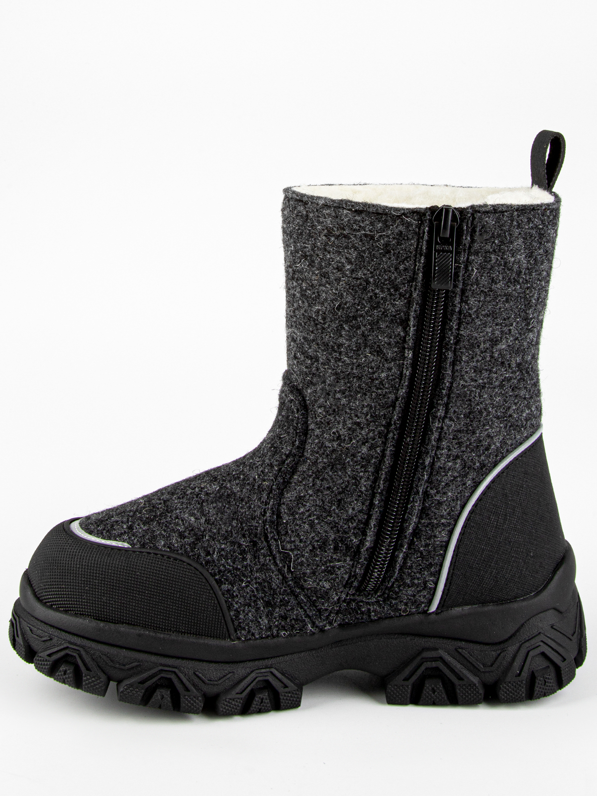 Тёплые сапоги из войлока — надежная защита от холода даже при сильных морозах. Подкладка выполнена из 80% шерстяного меха, обеспечивая дополнительное тепло и комфорт, а стелька на 80% состоит из натуральной шерсти, что способствует сохранению тепла и поддержанию оптимального микроклимата внутри обуви. Толстая подошва из ТЭП-материала сочетает в себе лёгкость и прочность, а также предотвращает скольжение, обеспечивая устойчивость на любых поверхностях. Эти сапоги — идеальный выбор для холодной зимы, позволяя ребёнку чувствовать себя комфортно и уверенно.