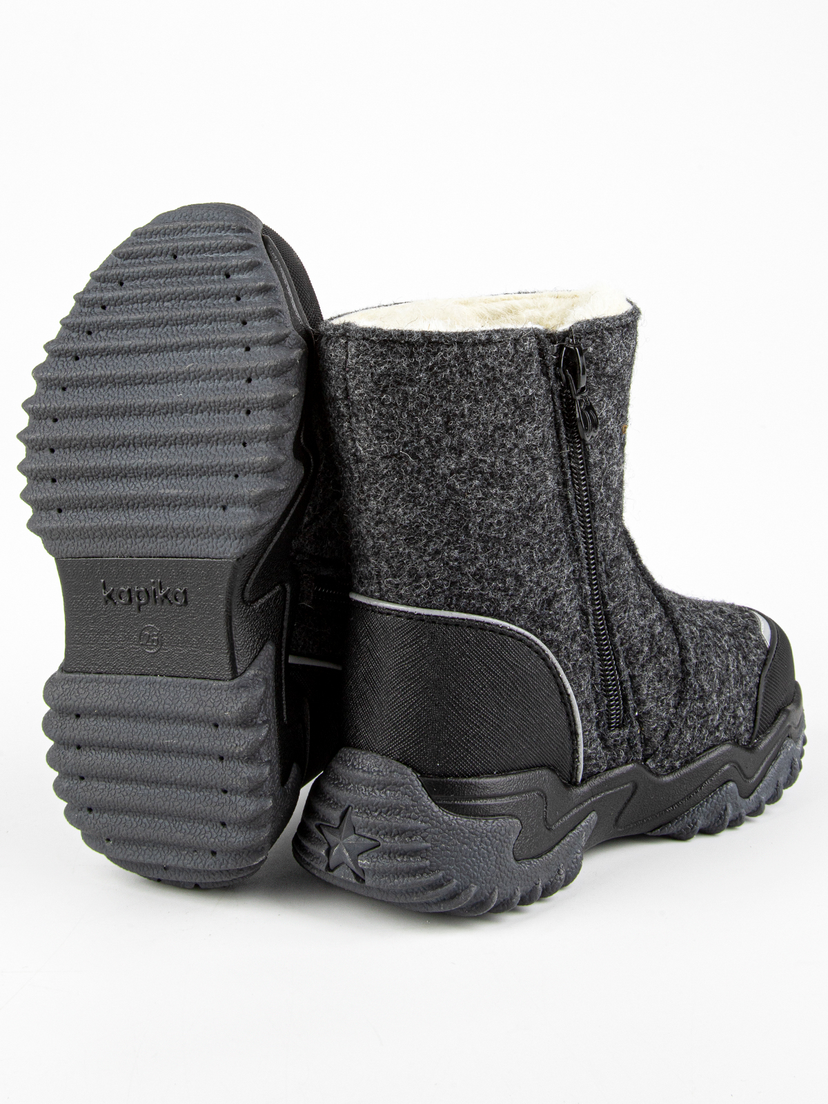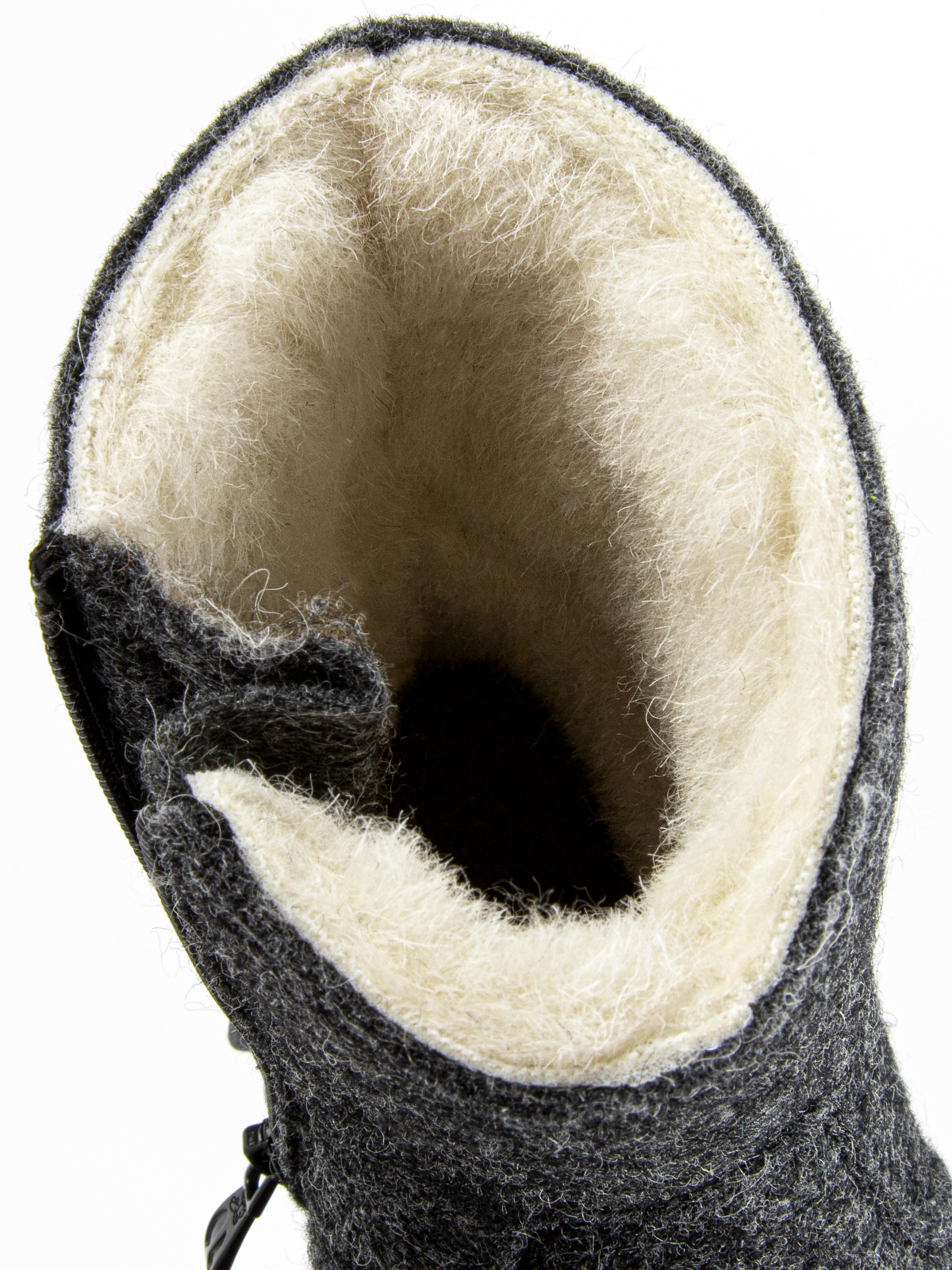 Теплые сапоги из войлока – надежная защита от холода даже при сильных морозах. Подкладка и стелька выполнены из 80% шерстяного меха. Толстая подошва, состоящая из полимерного материала, обеспечивает легкость и, при этом, предотвращает скольжение.