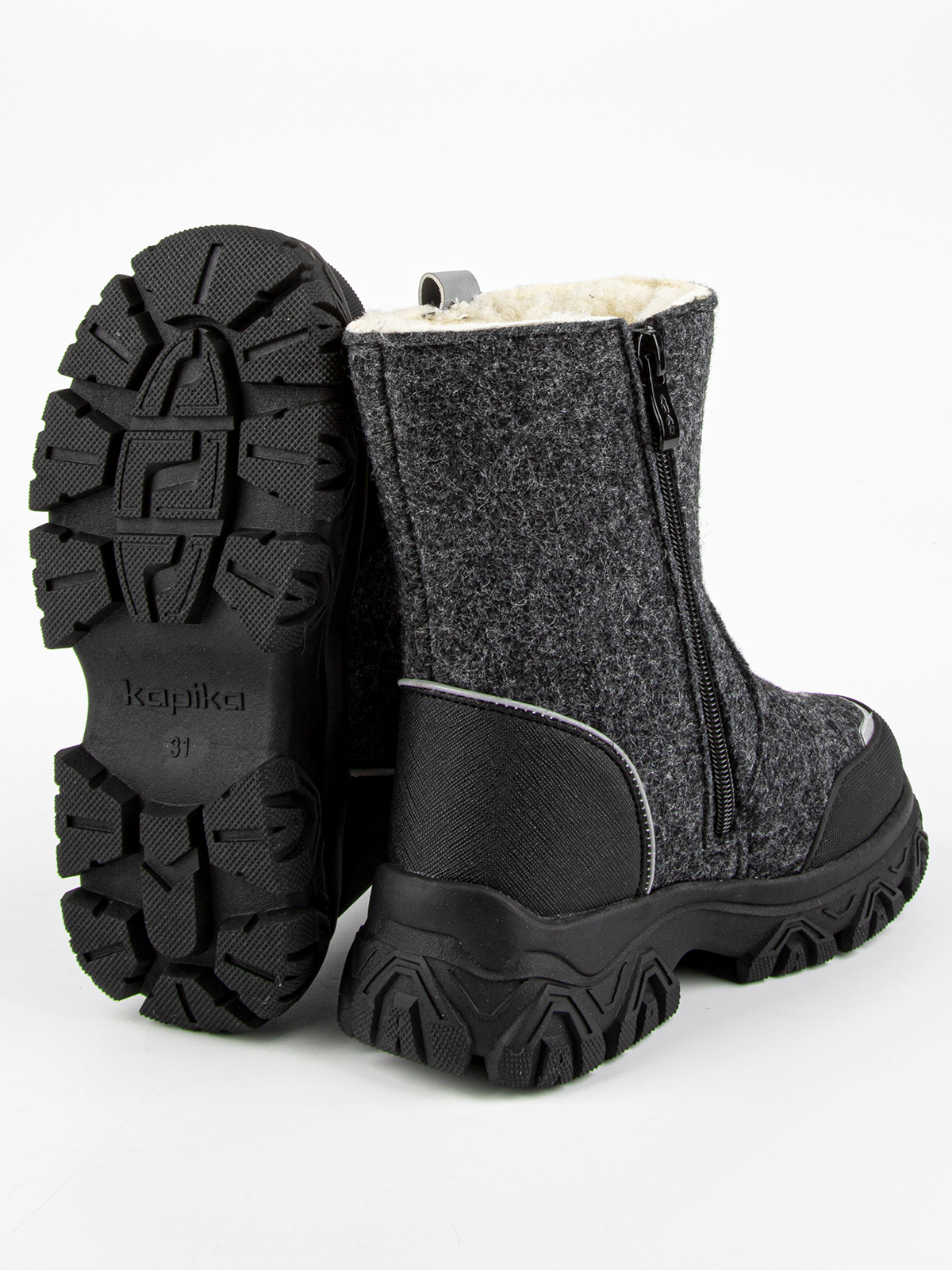 Теплые сапоги из войлока – надежная защита от холода даже при сильных морозах. Подкладка и стелька выполнены из 80% шерстяного меха. Толстая подошва, состоящая из полимерного материала, обеспечивает легкость и, при этом, предотвращает скольжение.