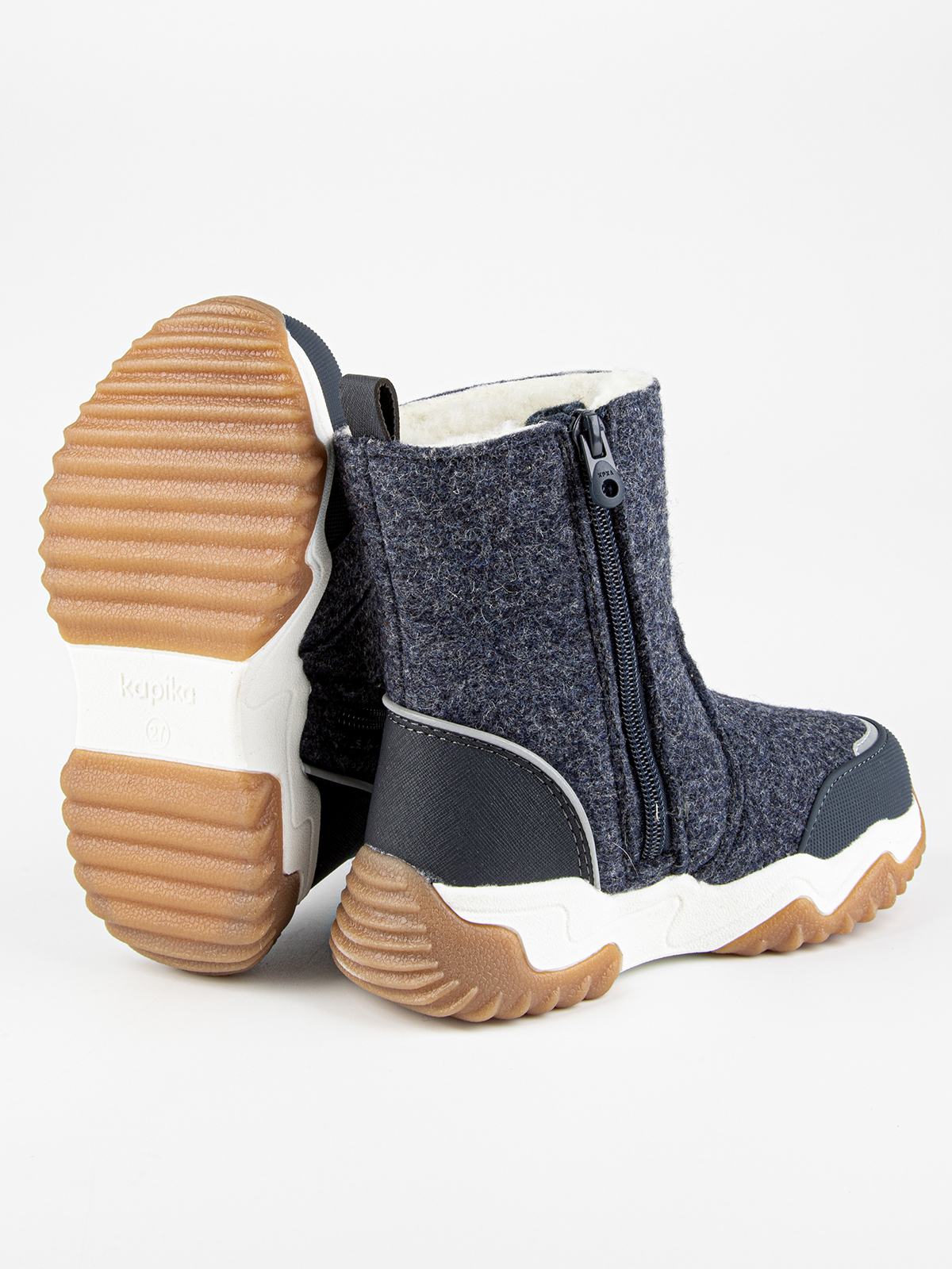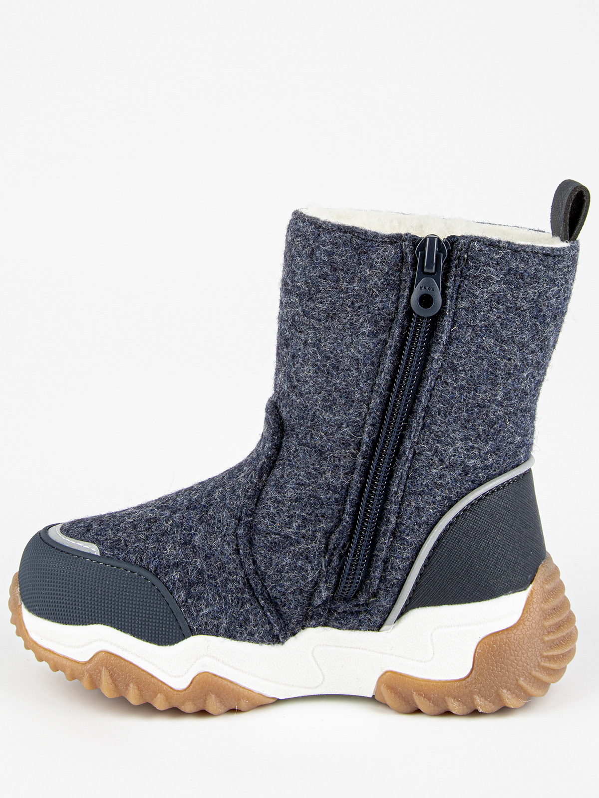 Тёплые сапоги из войлока — надежная защита от холода даже при сильных морозах. Подкладка выполнена из 80% шерстяного меха, обеспечивая дополнительное тепло и комфорт, а стелька на 80% состоит из натуральной шерсти, что способствует сохранению тепла и поддержанию оптимального микроклимата внутри обуви. Толстая подошва из ТЭП-материала сочетает в себе лёгкость и прочность, а также предотвращает скольжение, обеспечивая устойчивость на любых поверхностях. Эти сапоги — идеальный выбор для холодной зимы, позволяя ребёнку чувствовать себя комфортно и уверенно.