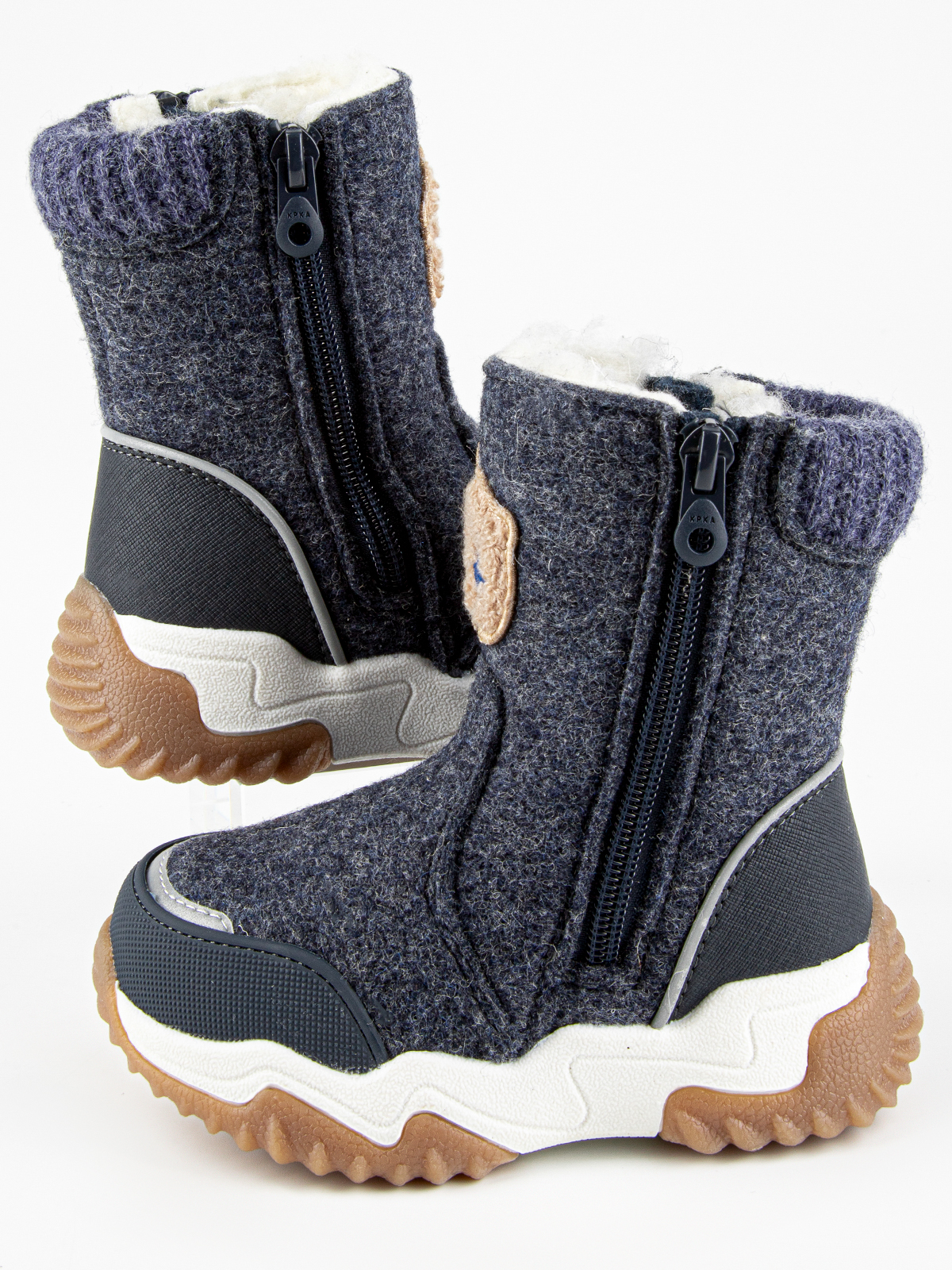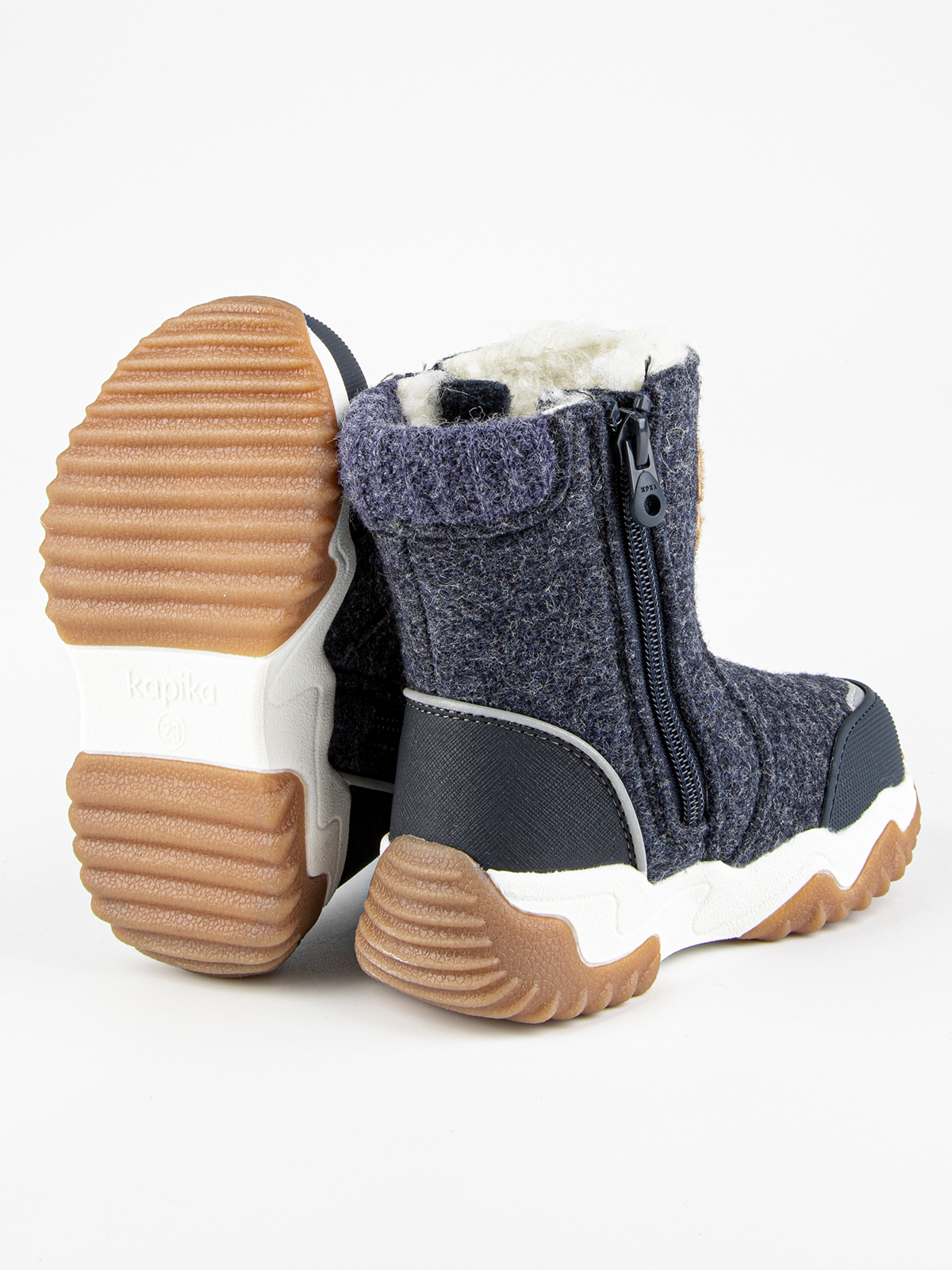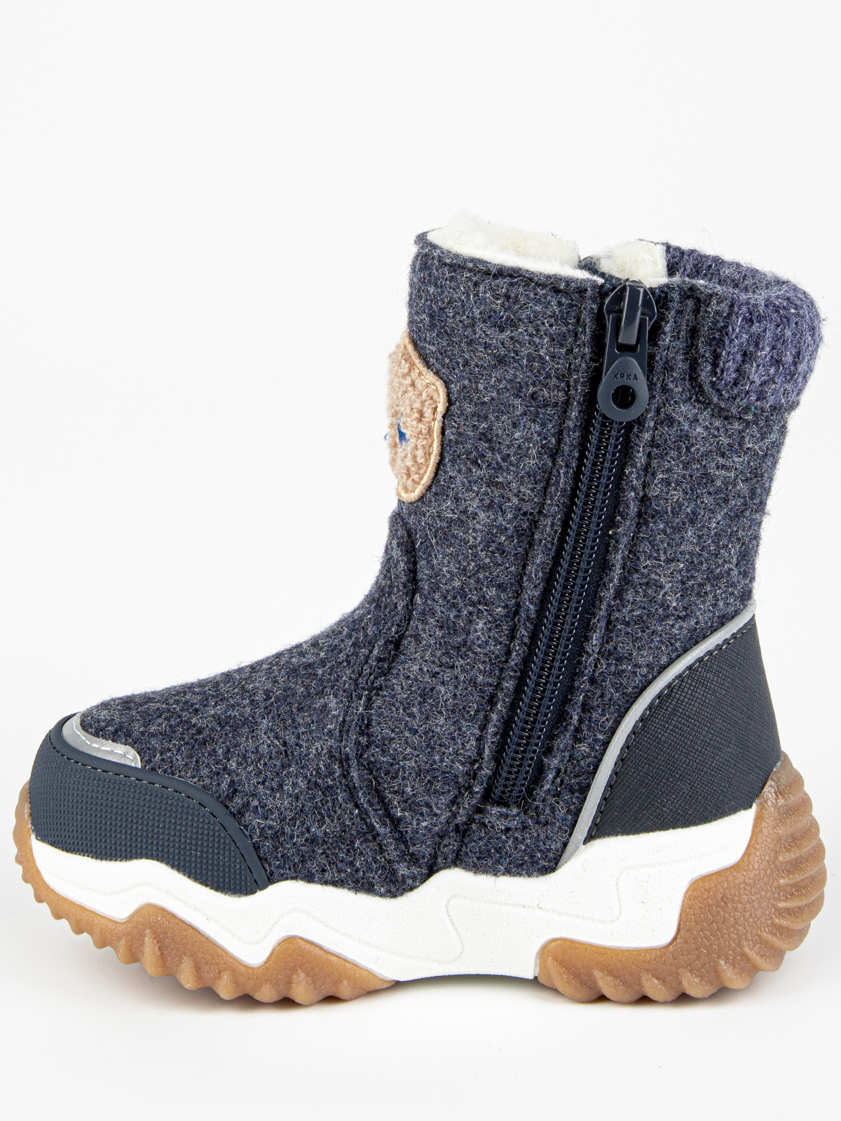 Тёплые сапоги из войлока — надежная защита от холода даже при сильных морозах. Подкладка выполнена из 80% шерстяного меха, обеспечивая дополнительное тепло и комфорт, стелька также на 80% состоит из натуральной шерсти, что способствует сохранению тепла и поддержанию оптимального микроклимата внутри обуви. Толстая подошва из ТЭП/ПУ-материала сочетает в себе лёгкость и прочность, а также предотвращает скольжение, обеспечивая устойчивость на любых поверхностях. Эти сапоги — идеальный выбор для холодной зимы, позволяя ребёнку чувствовать себя комфортно и уверенно.