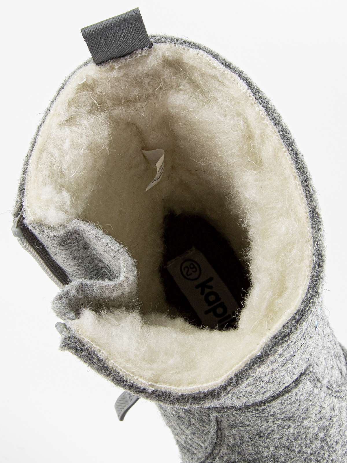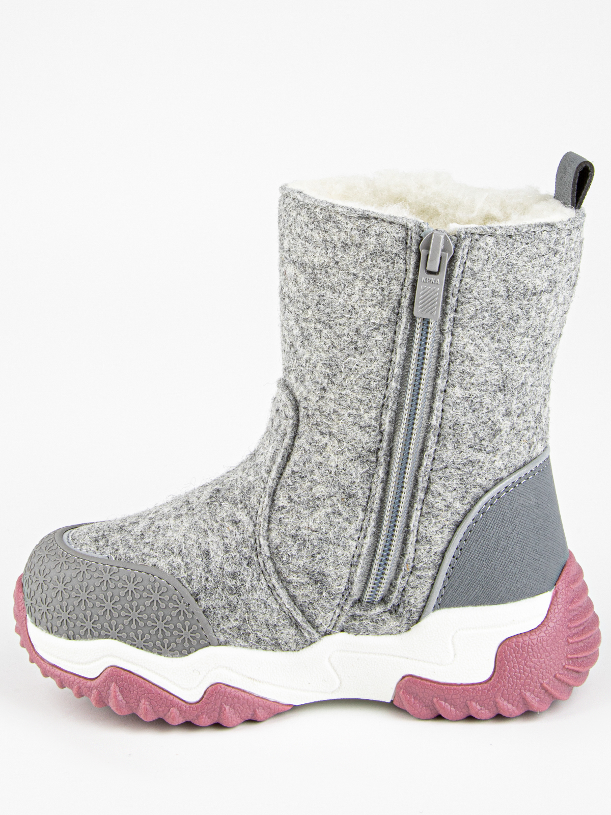 Тёплые сапоги из войлока — надежная защита от холода даже при сильных морозах. Подкладка выполнена из 80% шерстяного меха, обеспечивая дополнительное тепло и комфорт, стелька также на 80% состоит из натуральной шерсти, что способствует сохранению тепла и поддержанию оптимального микроклимата внутри обуви. Толстая подошва из ТЭП-материала сочетает в себе лёгкость и прочность, а также предотвращает скольжение, обеспечивая устойчивость на любых поверхностях. Красивый дизайн подойдет под любую одежду, что особенно важно для девочки. Эти сапоги — идеальный выбор для холодной зимы, позволяя ребёнку чувствовать себя комфортно и уверенно.