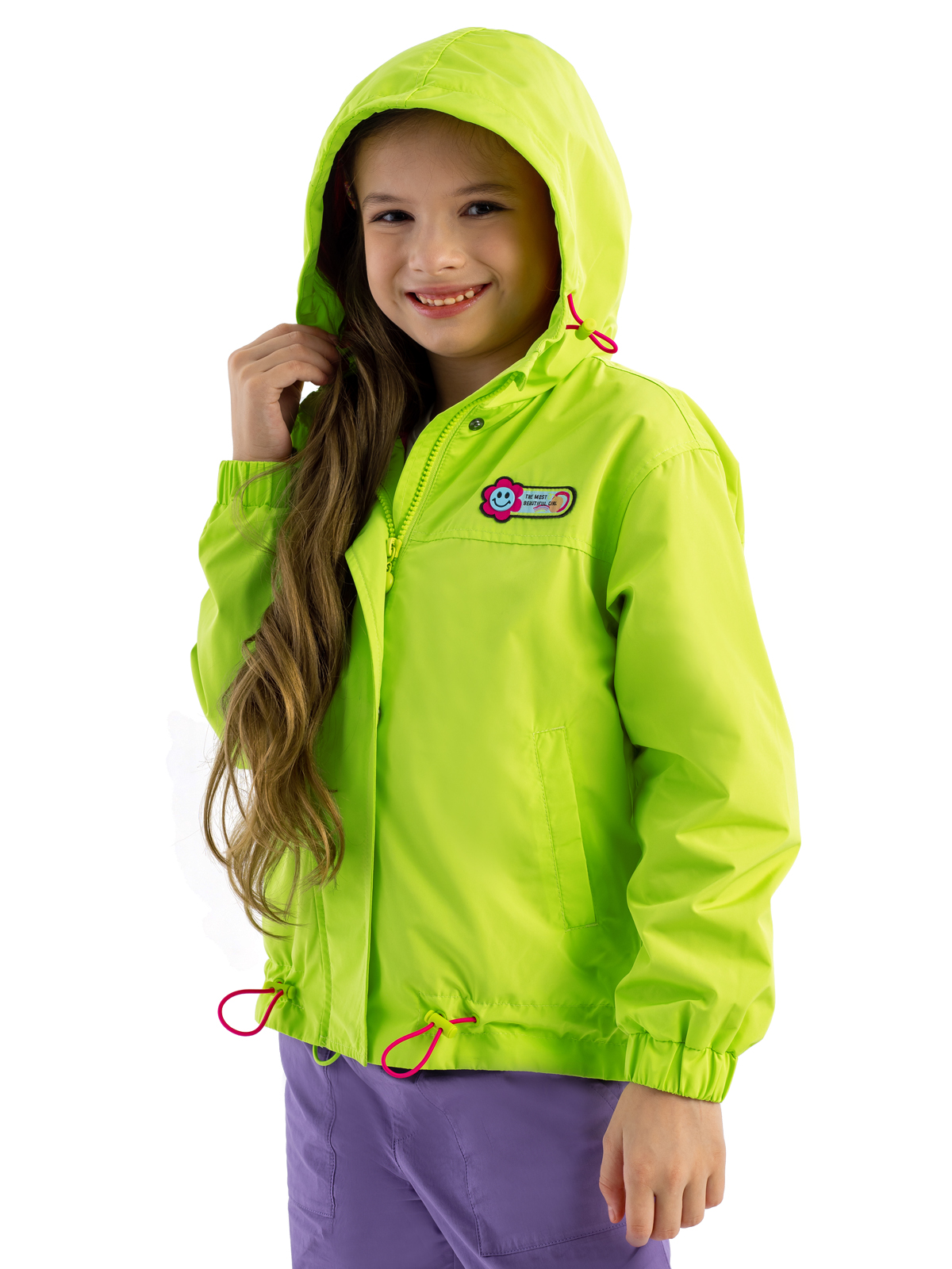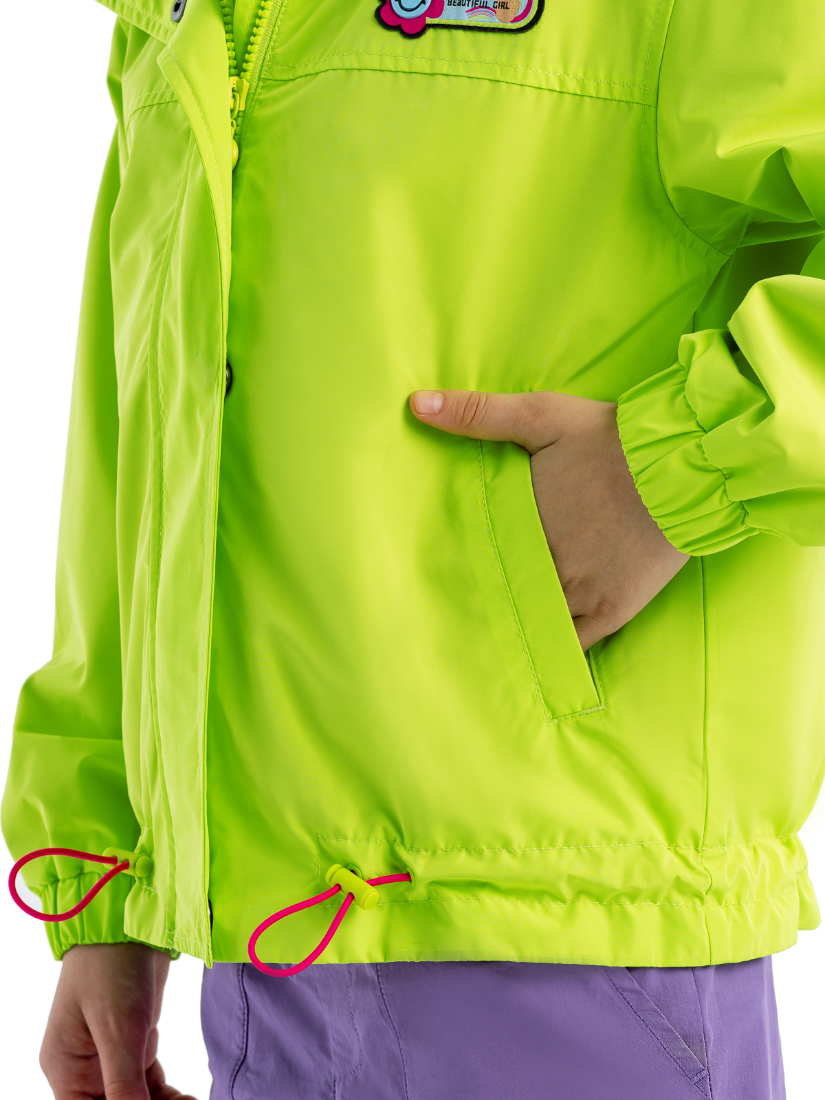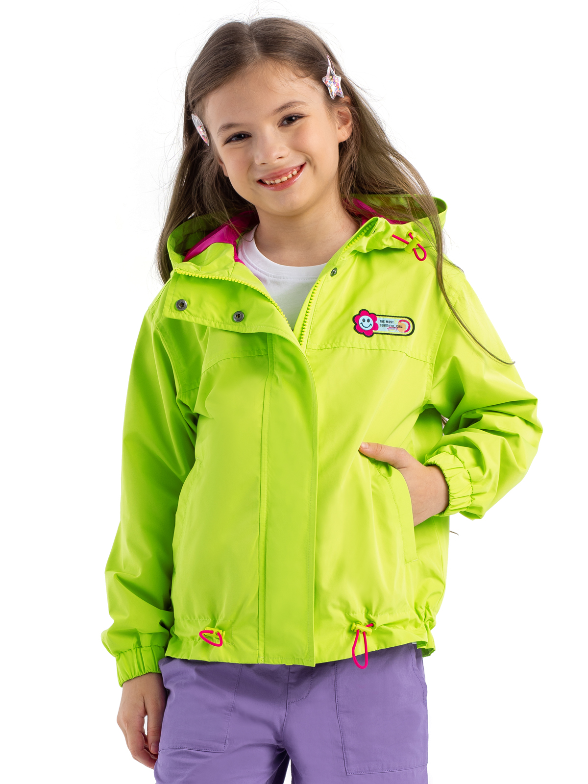 Яркая ветровка свыполнена в красивом зеленом цвете и имеет блестящее покрытие. Капюшон на ветровке является несъемным и регулируется по объему с помощью кулиски, что обеспечивает дополнительную защиту от ветра и дождя. Затяжки по низу ветровки позволяют регулировать ее ширину и защититься от ветра, чтобы она идеально сидела на фигуре. Внутри ветровки используется контрастная подкладка. Интересная фурнитура и нашивной патч добавляют стильные акценты.