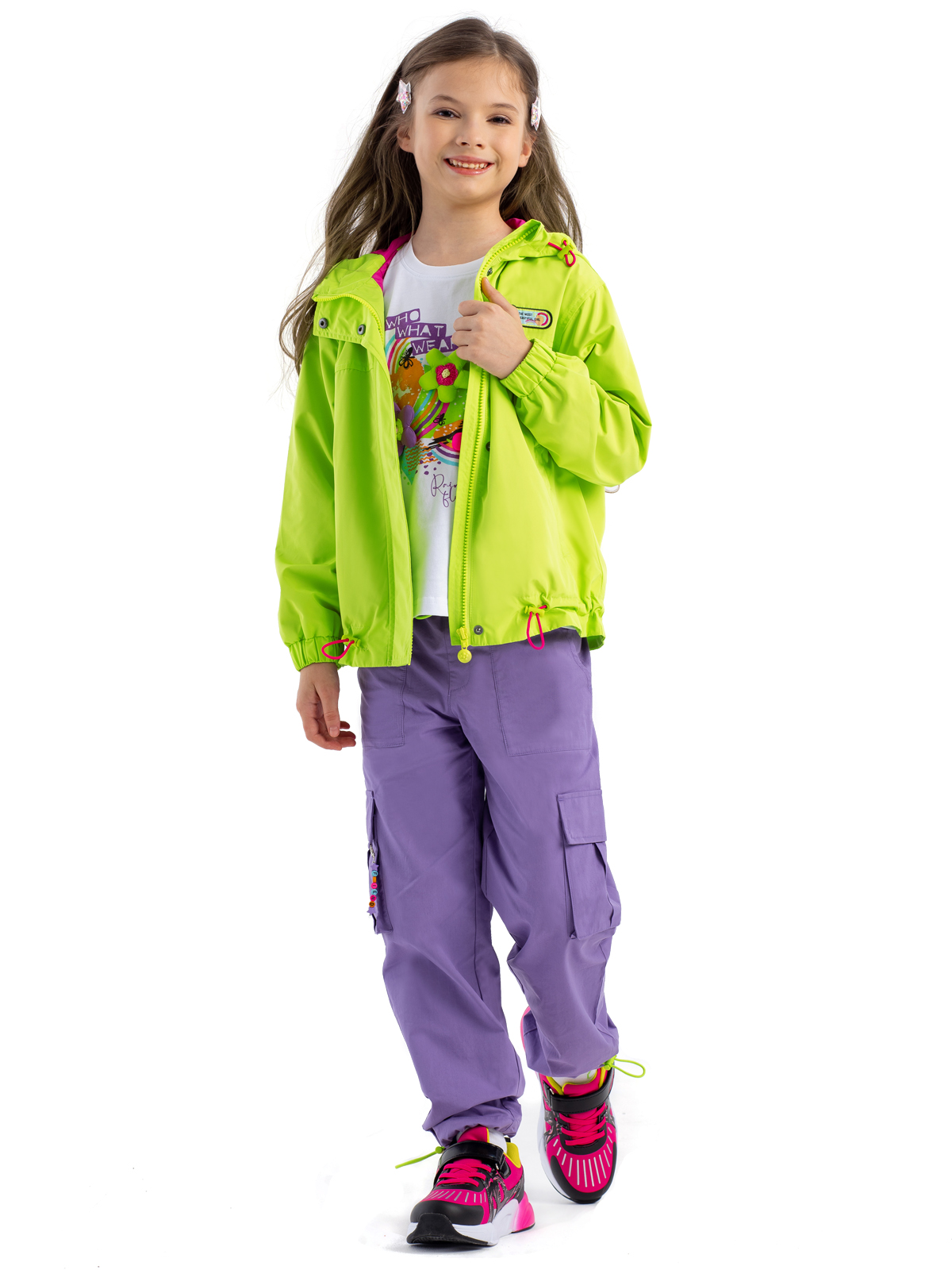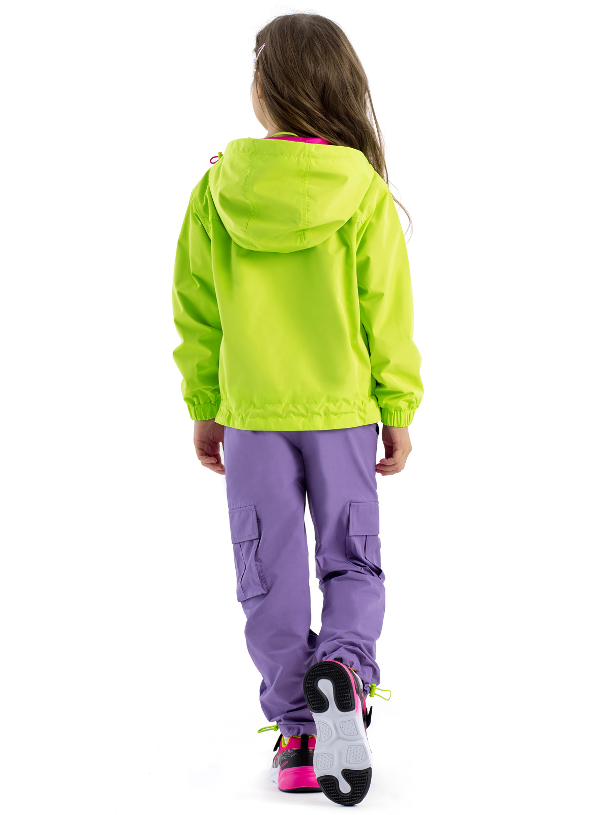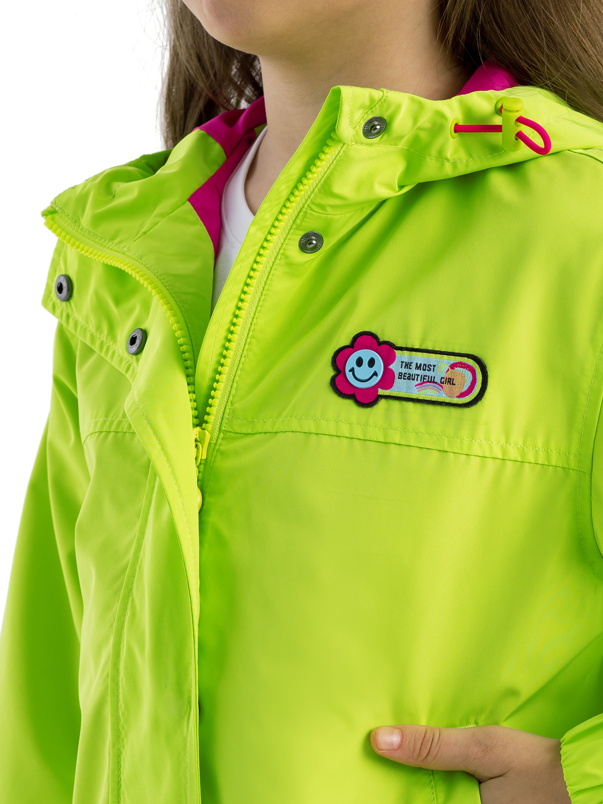 Яркая ветровка свыполнена в красивом зеленом цвете и имеет блестящее покрытие. Капюшон на ветровке является несъемным и регулируется по объему с помощью кулиски, что обеспечивает дополнительную защиту от ветра и дождя. Затяжки по низу ветровки позволяют регулировать ее ширину и защититься от ветра, чтобы она идеально сидела на фигуре. Внутри ветровки используется контрастная подкладка. Интересная фурнитура и нашивной патч добавляют стильные акценты.